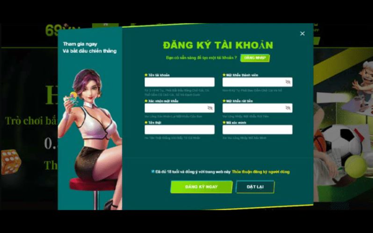 Điều kiện cơ bản nhất để đăng ký 69VN là bạn phải đủ tuổi hợp pháp. Thông thường, người chơi phải đủ tuổi trưởng thành (18 tuổi trở lên) mới có thể tham gia cá cược trực tuyến.